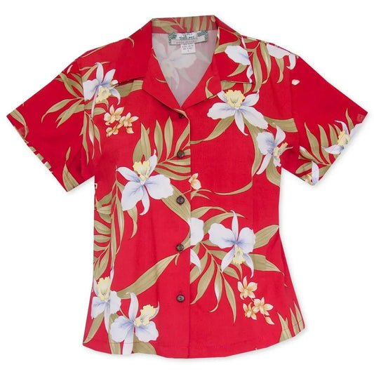 bamboo orchid red hawaiian lady blouse