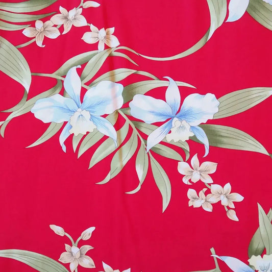 bamboo orchid red hawaiian rayon fabric