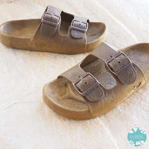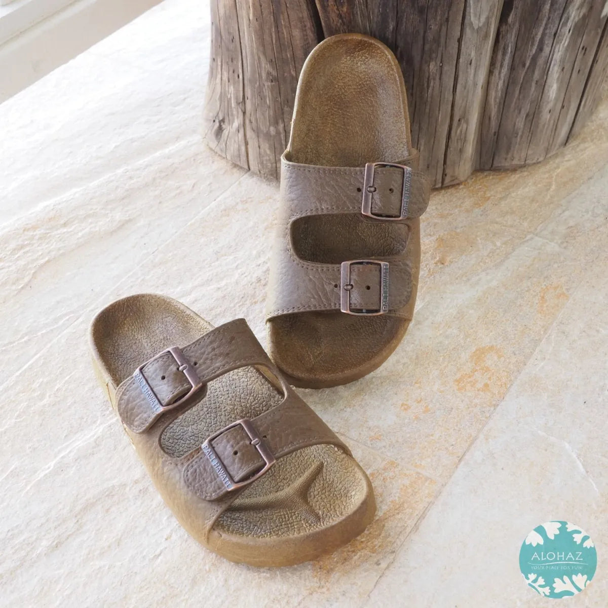 Same comfort as the Pali Hawaii Classic Sandals, the Buckle Sandals feature a wider footbed with adjustable upper strap buckles. Upper straps have a leather-like texture -- Enjoy the stylish design without harming any animals.