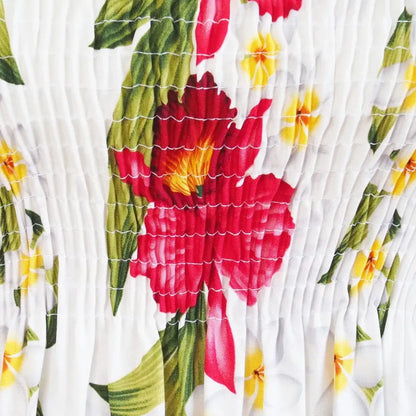 Tropical Hawaiian flowers in a pretty maxi dress with shaping smocked bust and adjustable tie shoulders. Comfortable, fitted bodice in a slight A-line silhouette.
