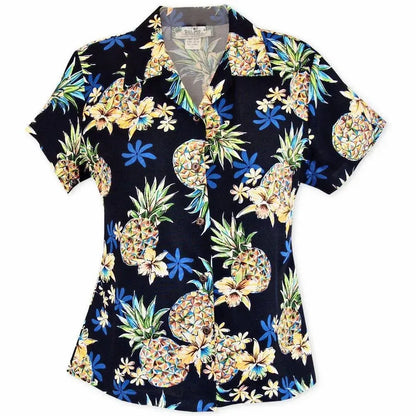 Hawaiian style meets classic women's blouse in tropical island fabrics. Sewn with authentic coconut buttons in a fitted shape. Match it with a skirt, a pair of shorts or flattering long pants.