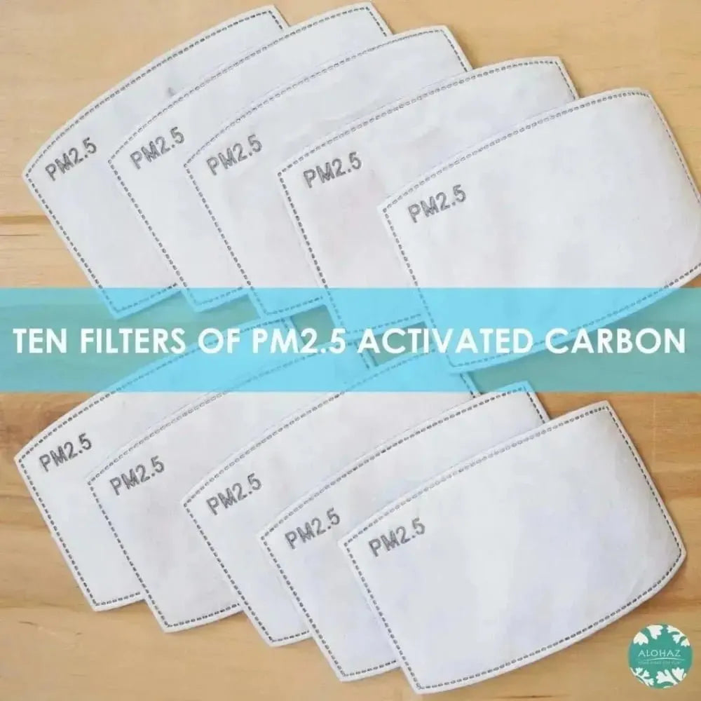 Five-layer activated carbon filters also known as PM 2.5 filters. Handy for filtering haze, dust, pollen or small particles. Fits nicely in our pleated & pocket masks.