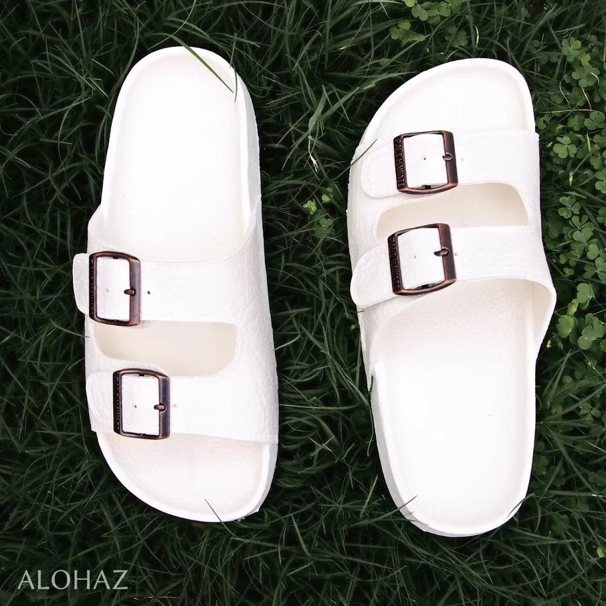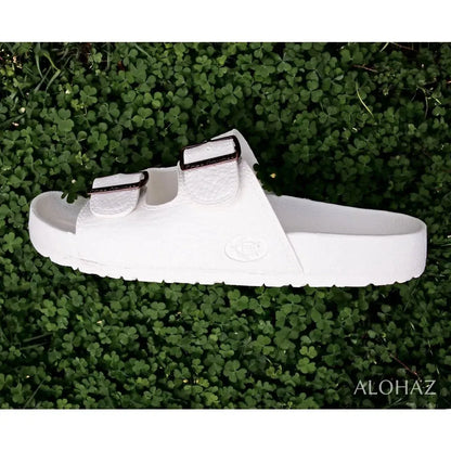 Same comfort as the Pali Hawaii Classic Sandals, the Buckle Sandals feature a wider footbed with adjustable upper strap buckles. Upper straps have a leather-like texture -- Enjoy the stylish design without harming any animals. Now in white, black & brown!