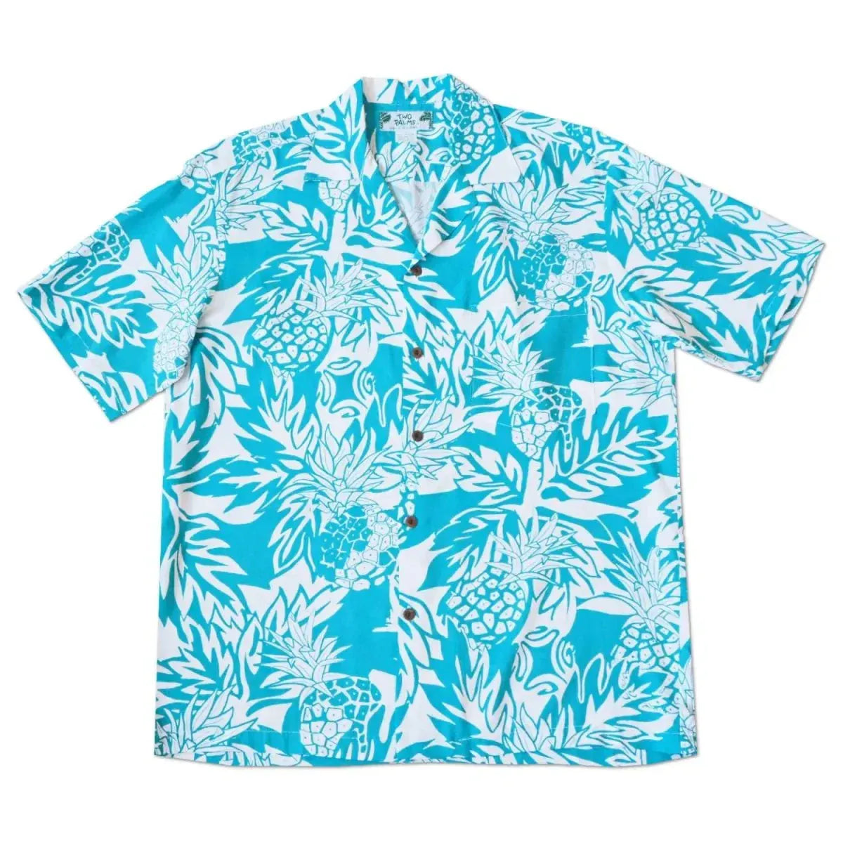 wild pineapples aqua hawaiian rayon shirt